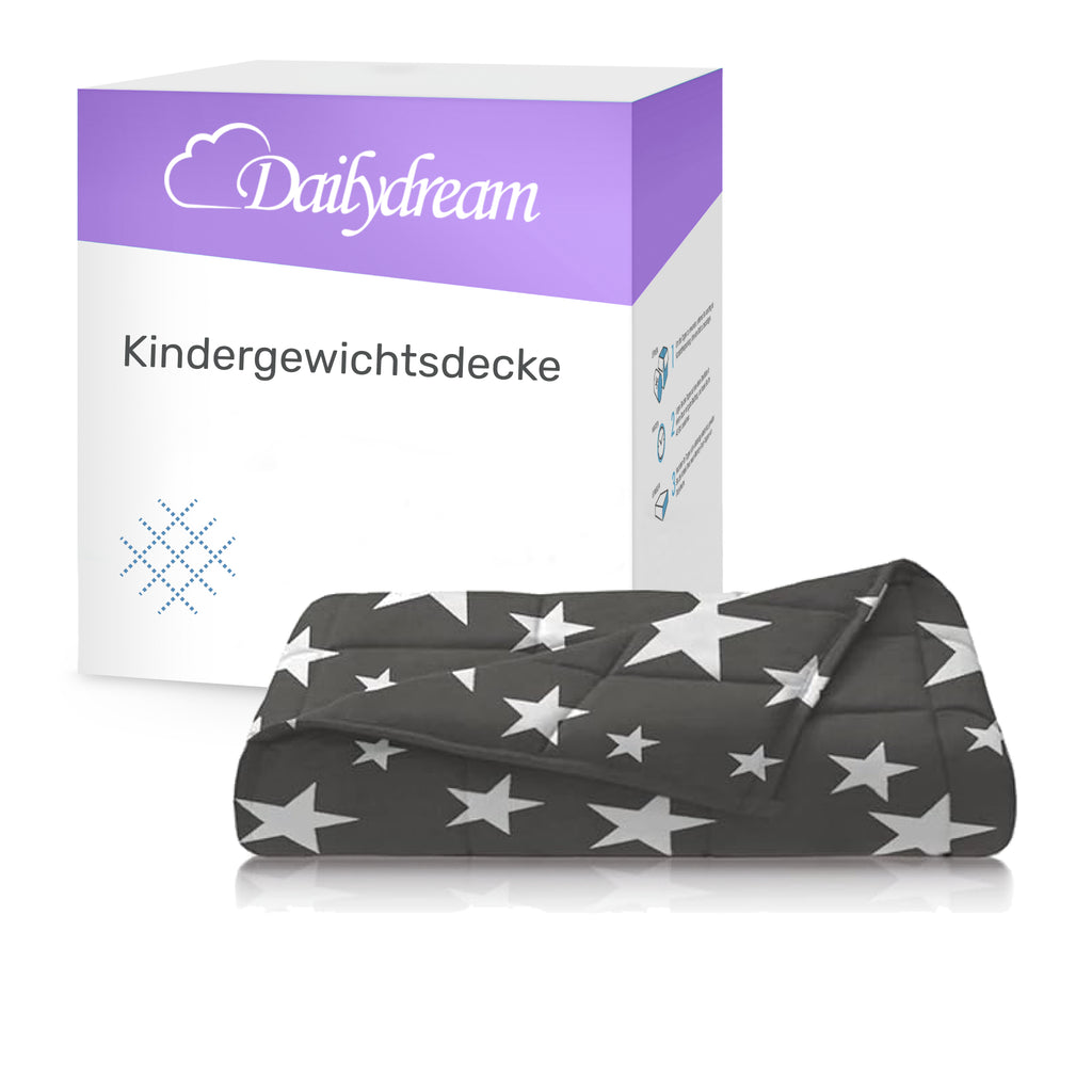 Die Dailydream Gewichtsdecke für Kinder fördert durch tiefe Druckstimulation ein Gefühl von Sicherheit und Geborgenheit. Sie erleichtert das Einschlafen und verbessert die Schlafqualität – perfekt für die gesunde Entwicklung deines Kindes.